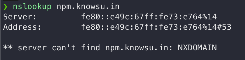 마지막으로 VPN을 끈 상태에서 도메인을 검색해 보면 아래처럼 외부에서는 조회되지 않는 걸 확인할 수 있다.