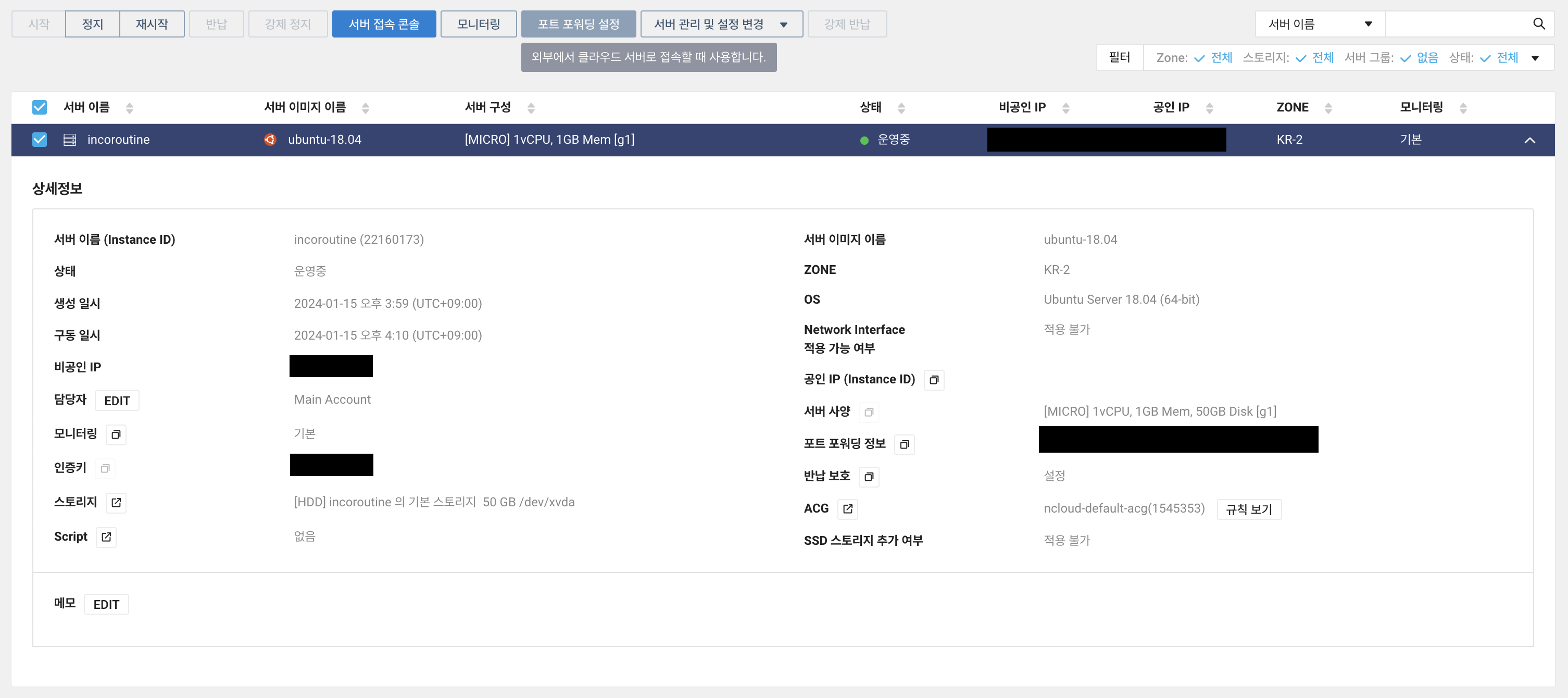 [네이버클라우드플랫폼] Server 생성 후 SSH접속 및 Public IP 연결하여 외부 접속 방법